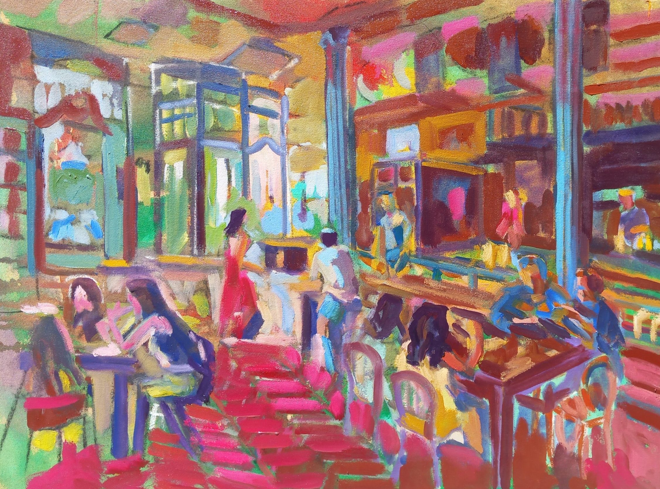 Café italiano pintado al óleo sobre lienzo de 60 x 81 cm.