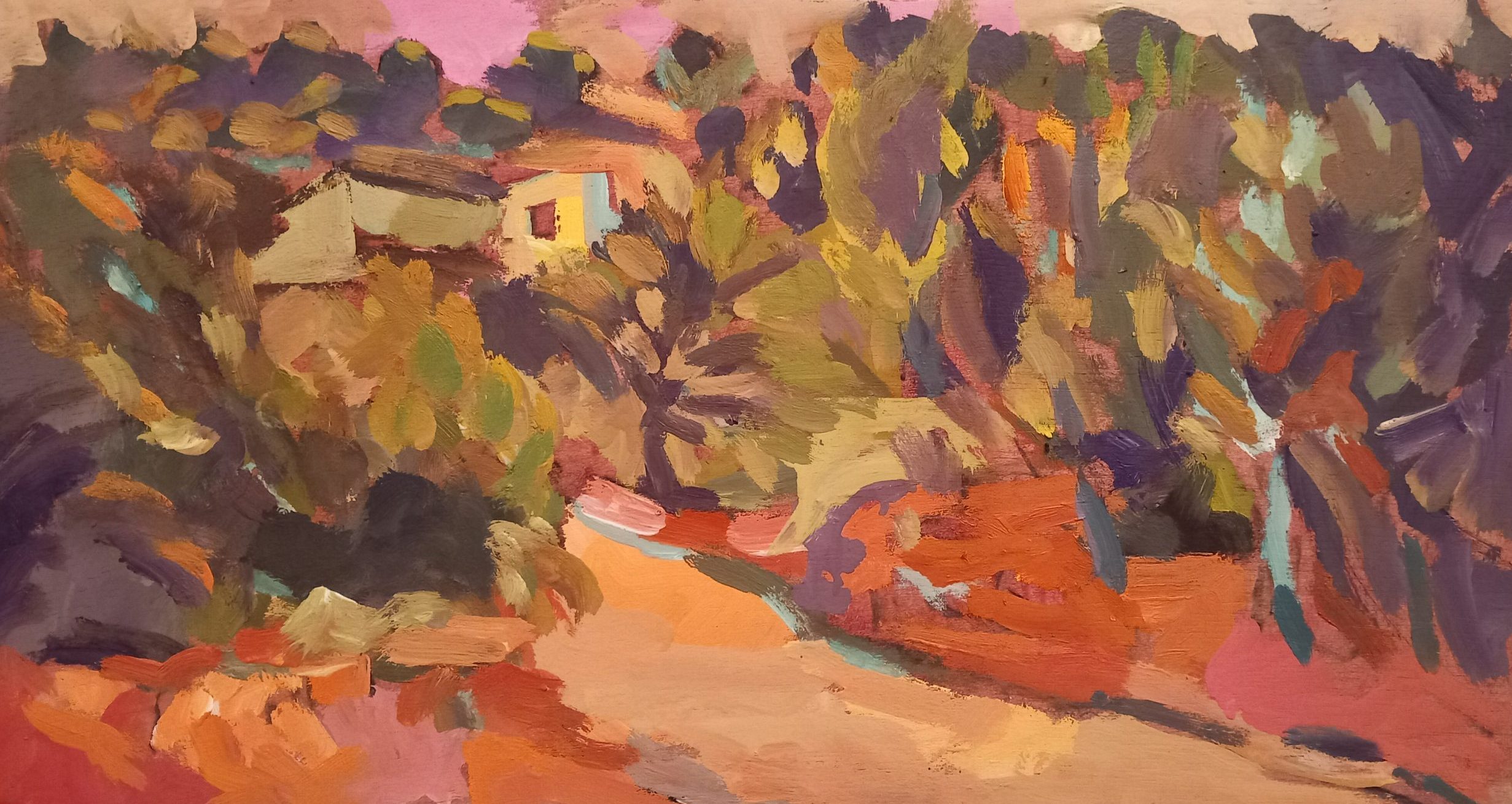 Composición pintada del natural en el entorno del Estudio al acrílico sobre tabla de 29 x 54 cm.