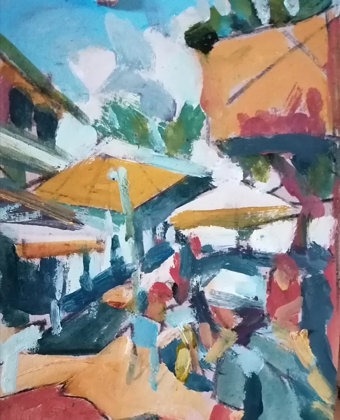 Boceto de la composición sobre la plaza de los naranjos de Marbella (Málaga) realizado